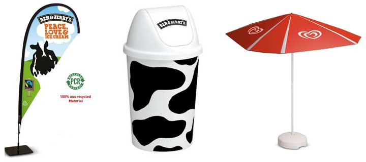 Setzen Sie Ihre Eisspezialitäten perfekt in Szene! Mit den original Werbeartikeln von Langnese und Ben & Jerry’s schaffen Sie Aufmerksamkeit, steigern Impulskäufe und sorgen für eine professionelle Präsentation Ihrer Produkte.